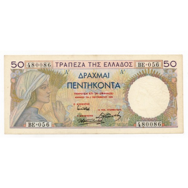 Τράπεζα της Ελλάδος 50 δραχμάς 1935 (ακυκλοφόρητο)